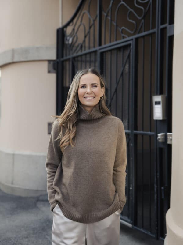 Rento ja tyylikäs neule, jossa on väljä ja korkea poolokaulus. Kauluksen voi halutessaan myös taittaa. Neuleessa on resorit hihoissa ja helmassa. Laadukas pooloneule, jonka materiaali on 100 % merinovillaa.