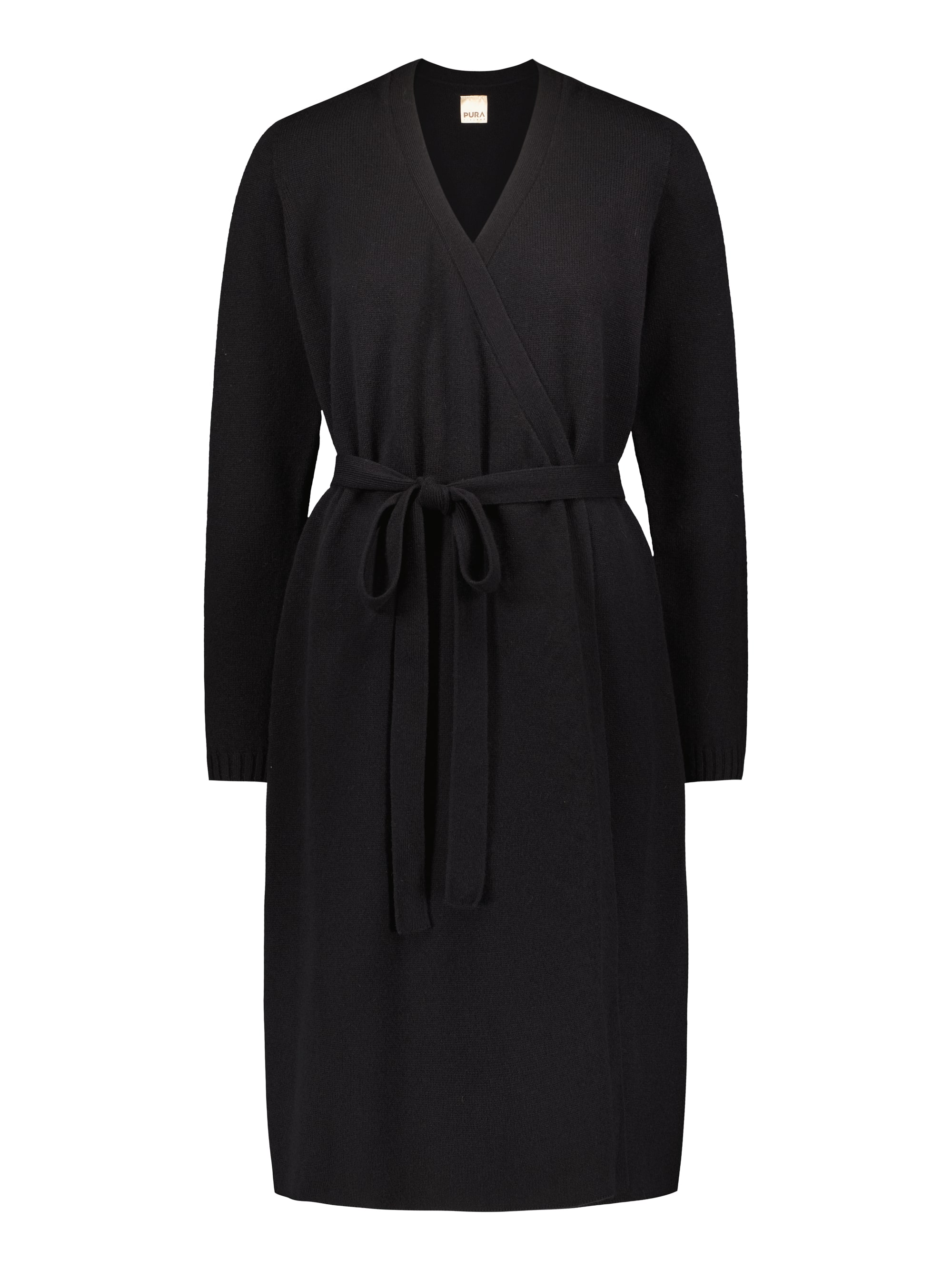 Tyylikäs pitkä kietaisumallinen neuletakki, jota voi käyttää myös mekkona. Vyötäröllä on vyölenkit ja pitkä irrotettava vyö. Materiaali on ihanan pehmeää merinovillaa, joka ei kutita.