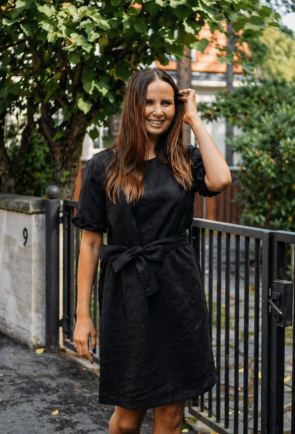 Kaunis pitkähihainen pusero, joka on valmistettu laadukkaasta 100 % pellavasta. Koristerypytys edessä. Takaa hieman pidempi kuin edestä. Klassinen pellavapaita, joka on valmistettu Tampereella.