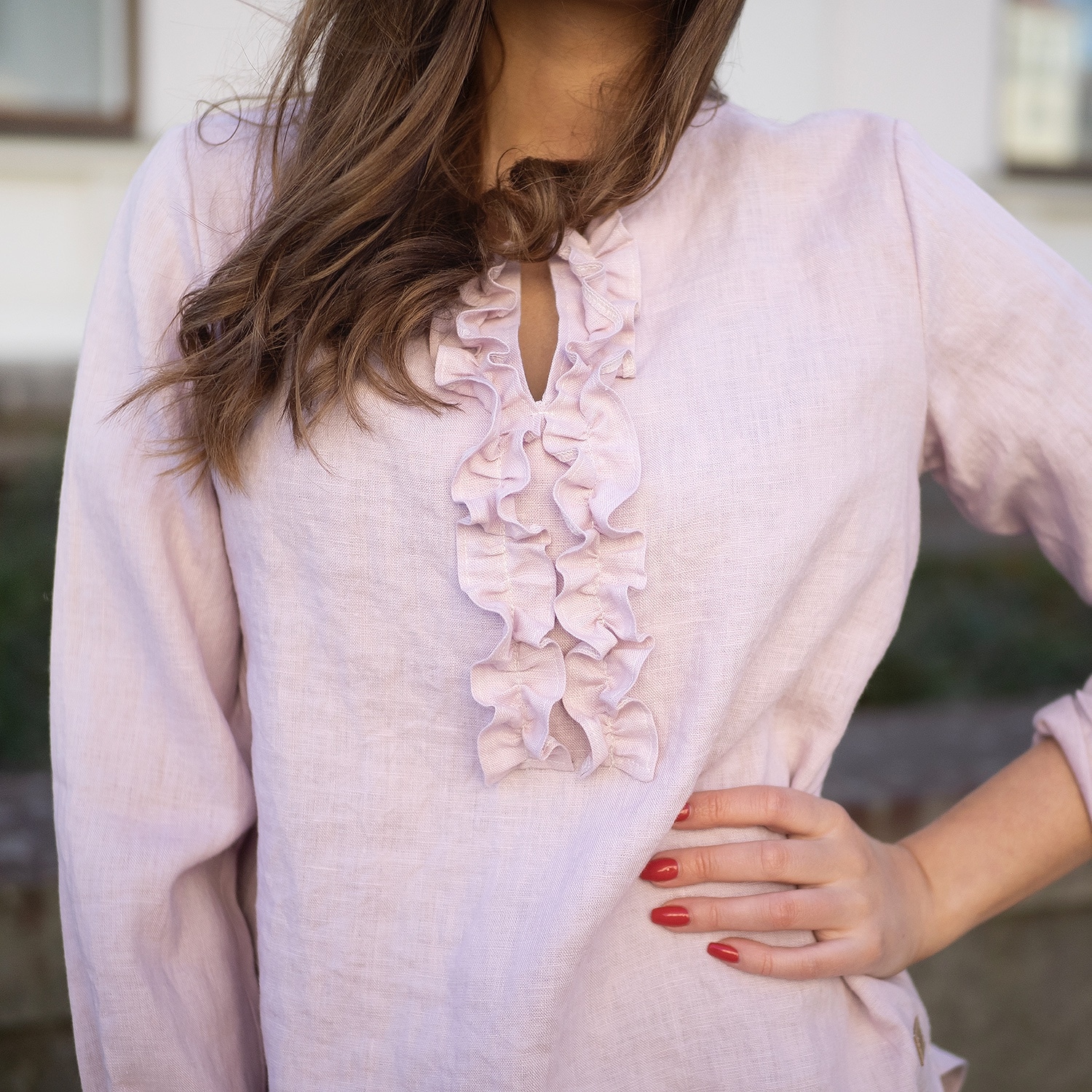 LINEN Ruffle Shirt -pellavapusero, hempeä roosa