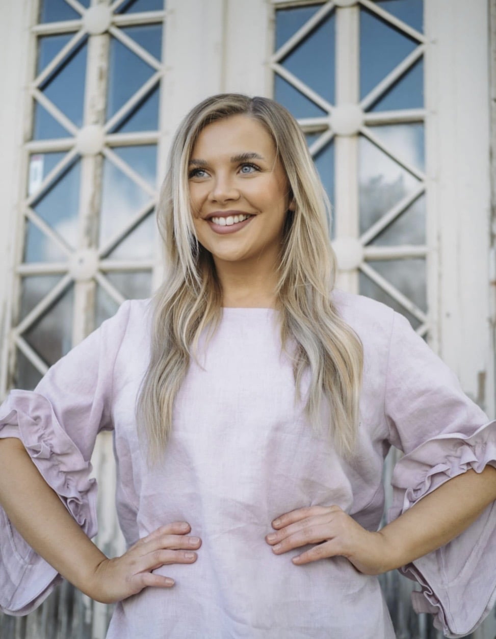LINEN Swan Shirt -pellavapusero, jossa on upeat hihat ja pyöreä pääntie. Tämä pusero on ollut klassikkomallimme jo vuosien ajan.