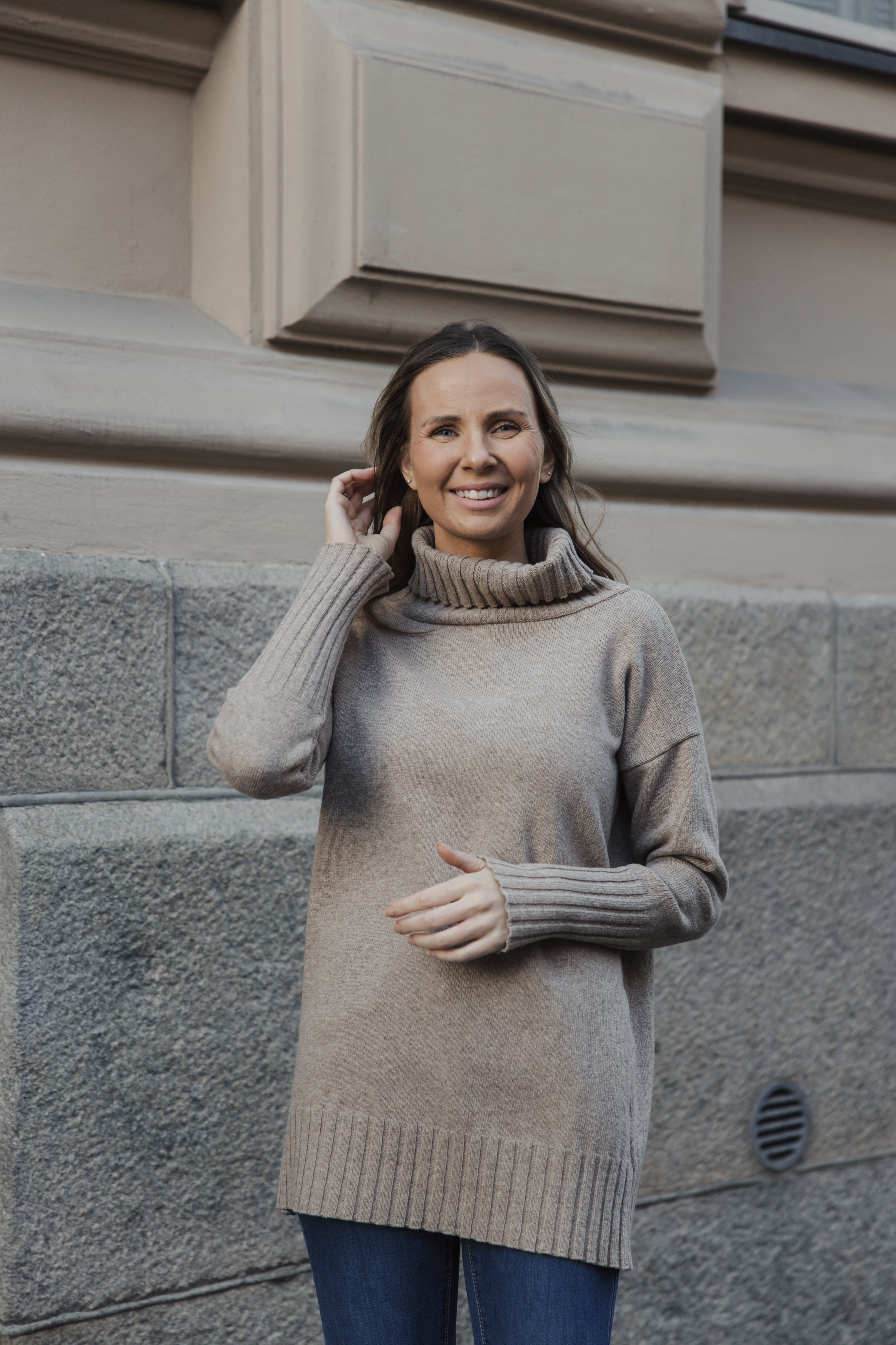 Suositun LOVE-sarjan mukavan pehmeä neule, jossa on väljä poolokaulus. Resorit hihoissa ja helmassa. Pudotettu olkasauma ja suora malli. Laadukas pooloneule, jonka materiaali on 100 % villaa.