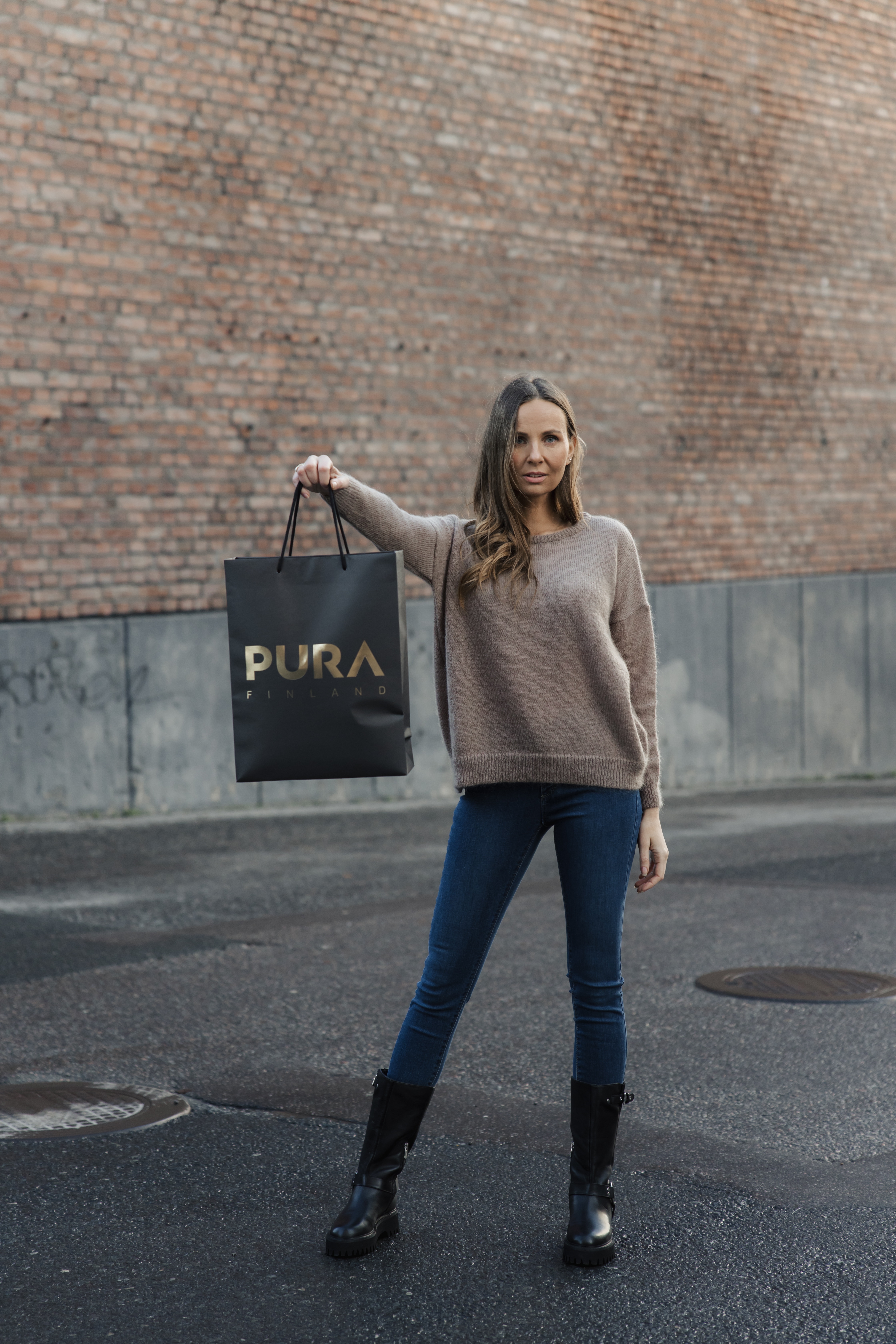 Oversize-pipo pehmeää mohair-villasekoitetta. Paksua ja joustavaa neulosta, joka ei kiristä. Lämmin pipo, jonka reuna kääntyy kaksinkertaiseksi. Edessä on pieni PURA-logo.