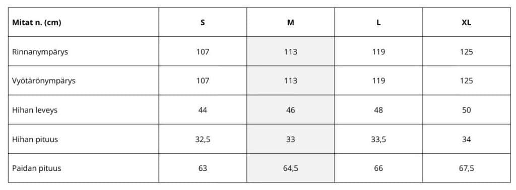 Malli on n. 172 cm pitkä ja käyttää kuvissa kokoa S.