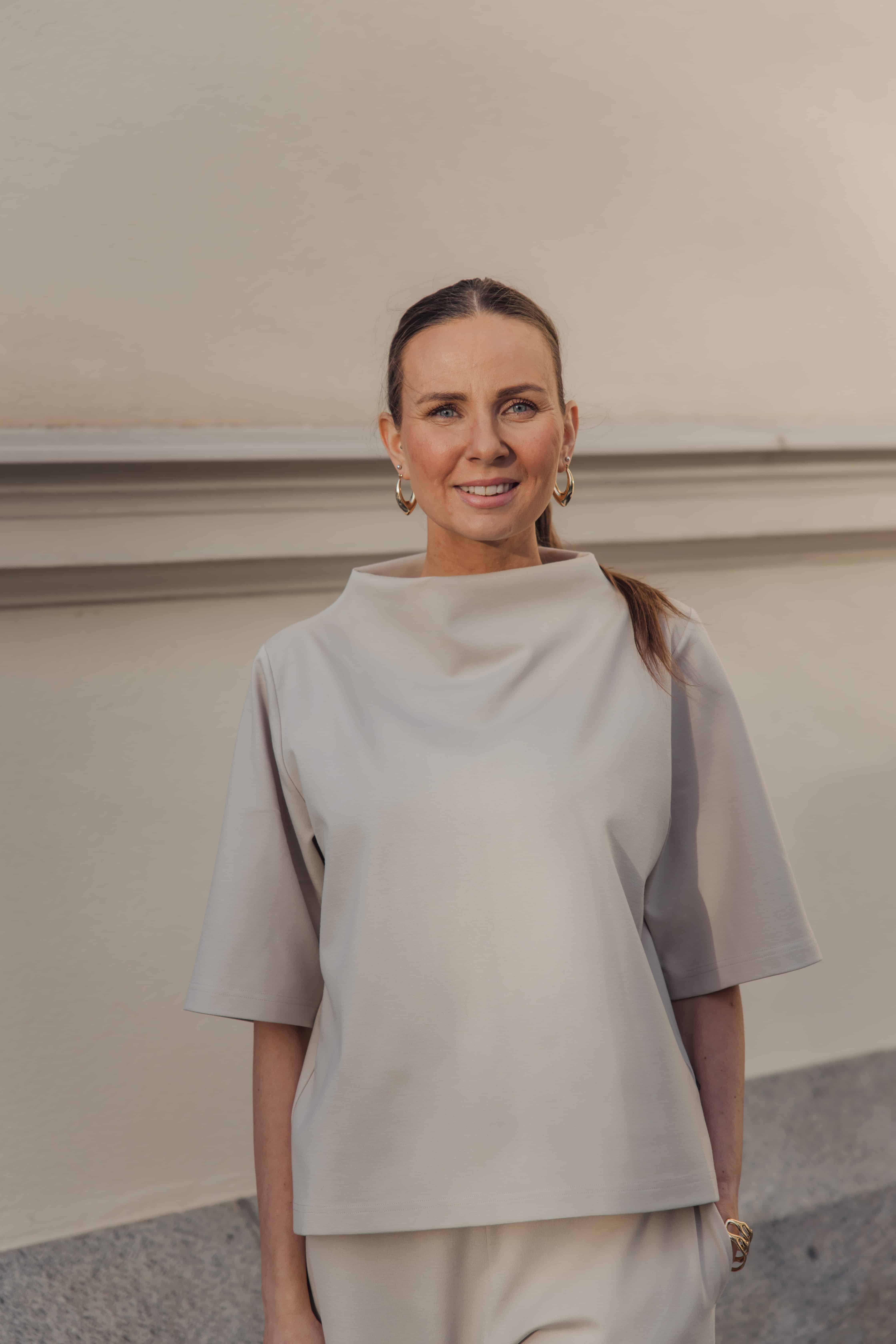 Laadukas pusero, jossa on matala poolokaulus. Puserossa on puolipitkät hihat, turtleneck-pääntie ja istutetut hihat. Materiaali on vahvaa sileäpintaista viskoosisekoitetta, joka tuntuu joustavalta päällä.