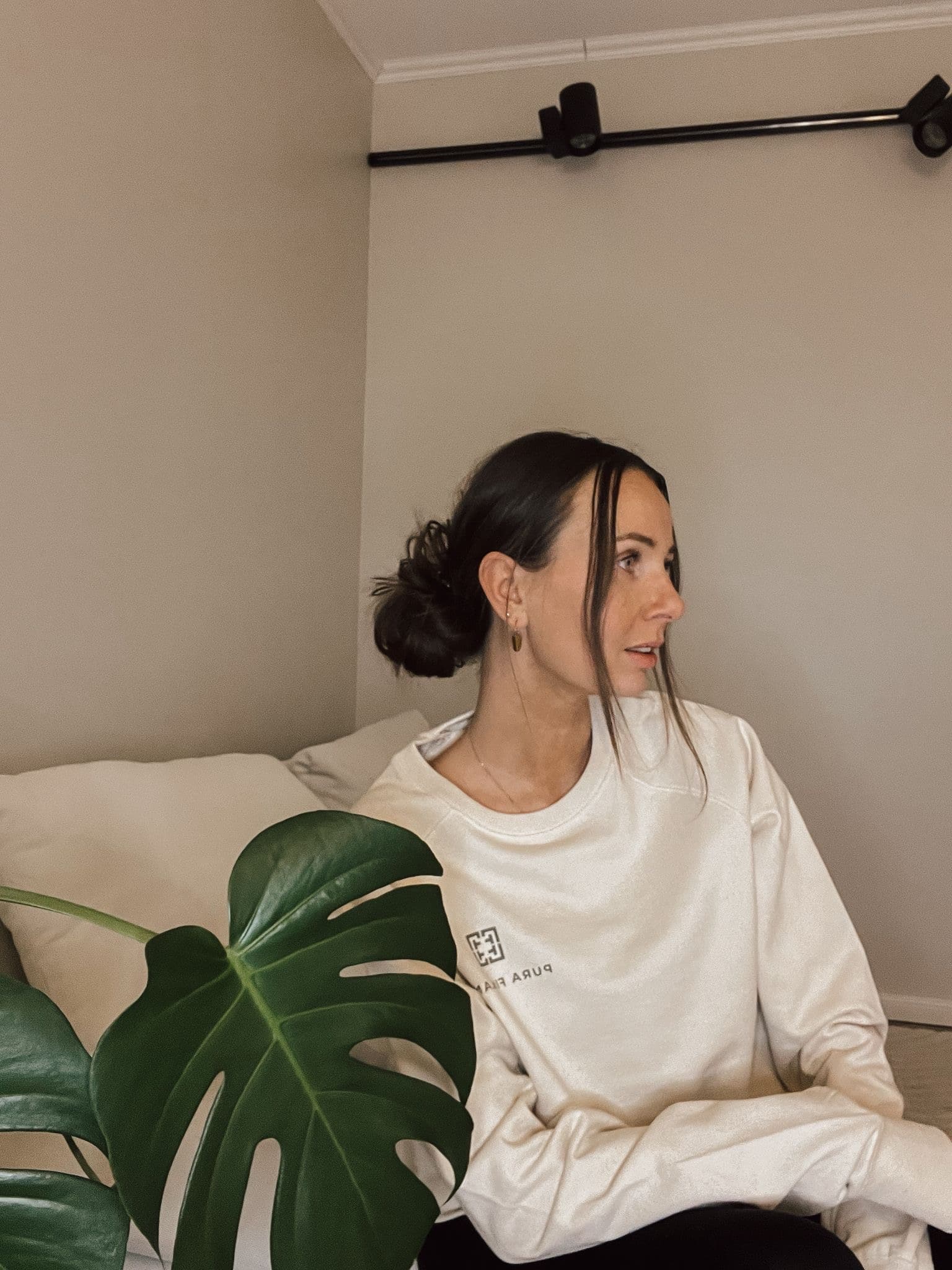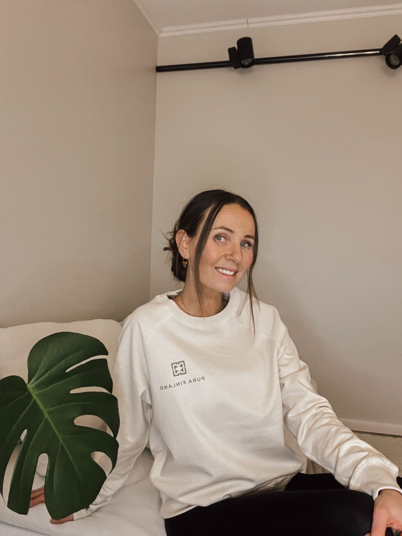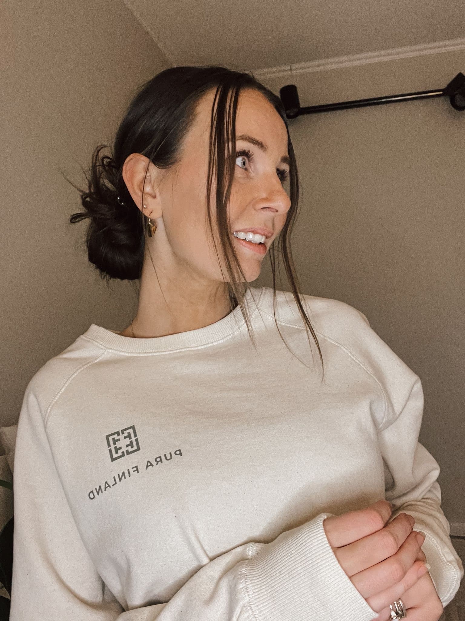 NEW PURA UNISEX Sweatshirt on valmistettu yhteistyössä kotimaisen Pure Waste Textilesin kanssa kierrätetyistä raaka-aineista. Oikella painettuna uudistettu PURA logo oliivin sävyssä.