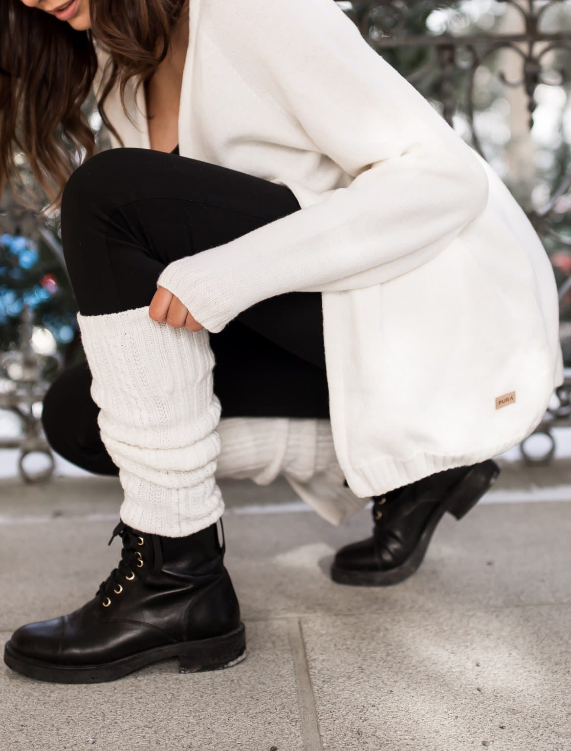 Pitkät villasukat, jotka tulevat yli polven. Sukissa on kaunista koristekirjailua ja joustava, resorimainen yläosa, jonka ansiosta sukat pysyvät ylhäällä. Ihanat over-knee villasukat, jotka näyttävät tyylikkäiltä ja tuntuvat pehmeiltä.